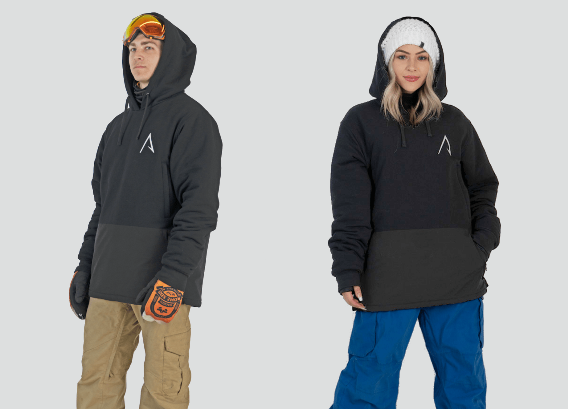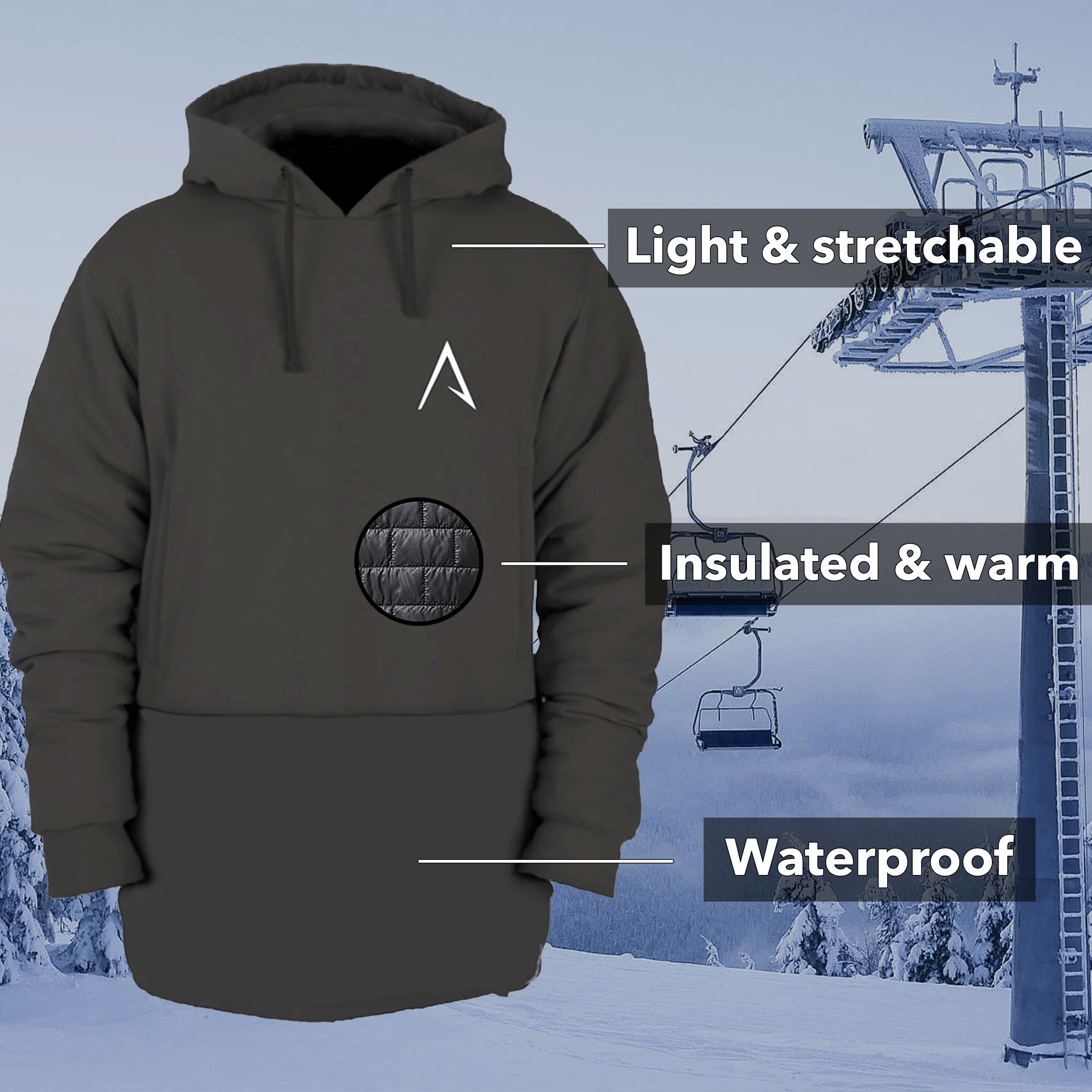 We achieve the style, comfort and mobility of a hoodie without losing ski-jacket warmth by making the exterior a soft, stretchable hoodie, while the inside is fully insulated and water-resistant, like a typical ski jacket.